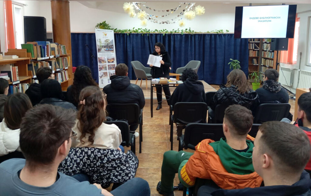 В два поредни дни учениците от 12. „В“ и 12. „А“ клас от ПМГ „Иван Вазов“ по инициатива на преподавателката им г-жа Диана Бонева гостуваха в библиотеката. По време на посещението директорът г-жа Валентина Терзиева изнесе лекция на тема „Видове библиографски указатели“, като запозна зрелостниците с тяхното значение и приложение в учебната и изследователската дейност. Бяха представени основните видове указатели и начините, по които те подпомагат систематичното и целенасочено търсене на информация.